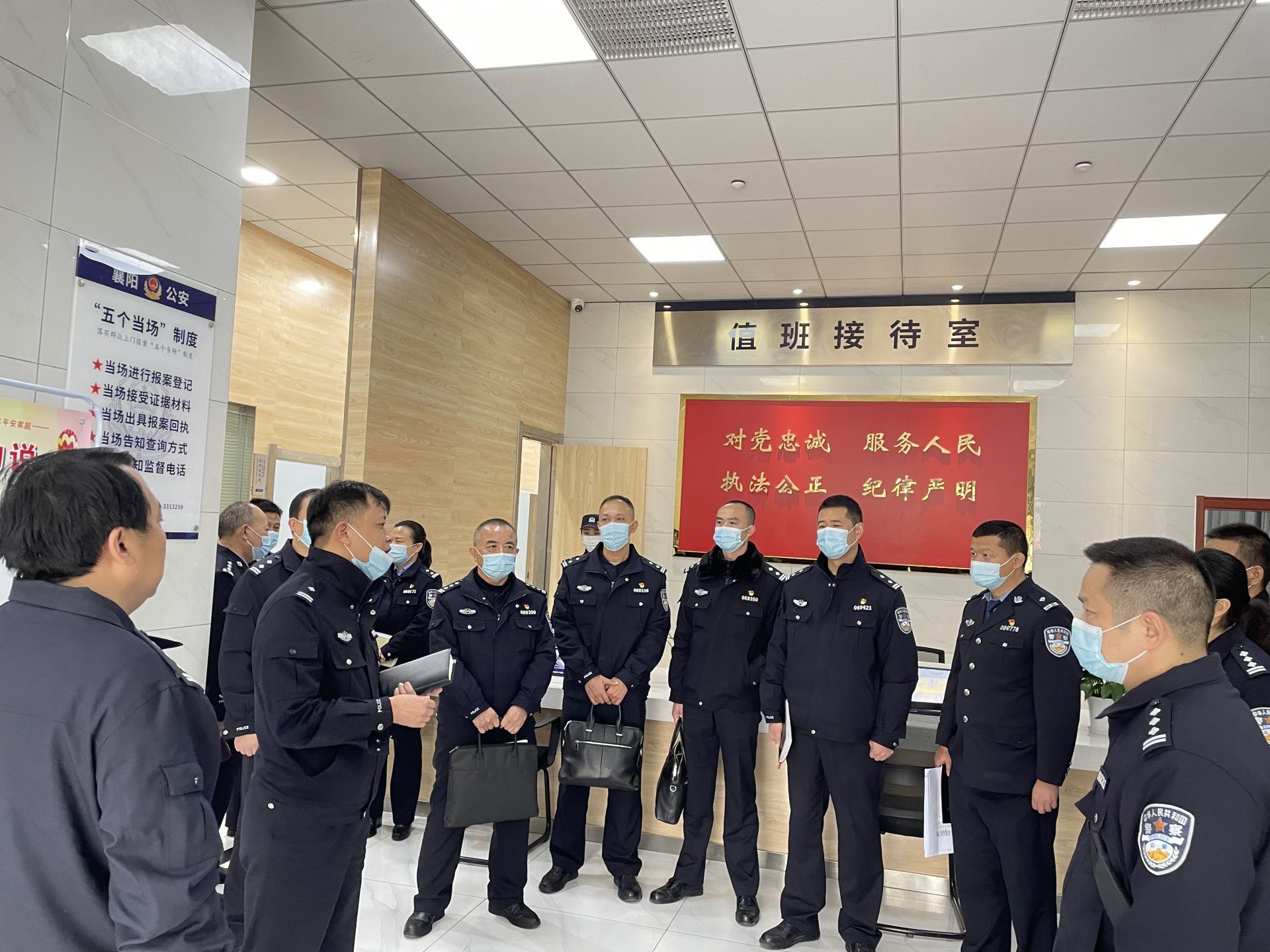 会前,紫贞派出所所长吴峥峥向分局各单位负责人介绍了紫贞派出所社区民警专职化工作运行情况,以及派出所执法规范化建设项目。在值班接警处大厅,结合“找堵防”工作,介绍了紫贞所规范接打值班电话、接待来访群众等工作的具体做法。