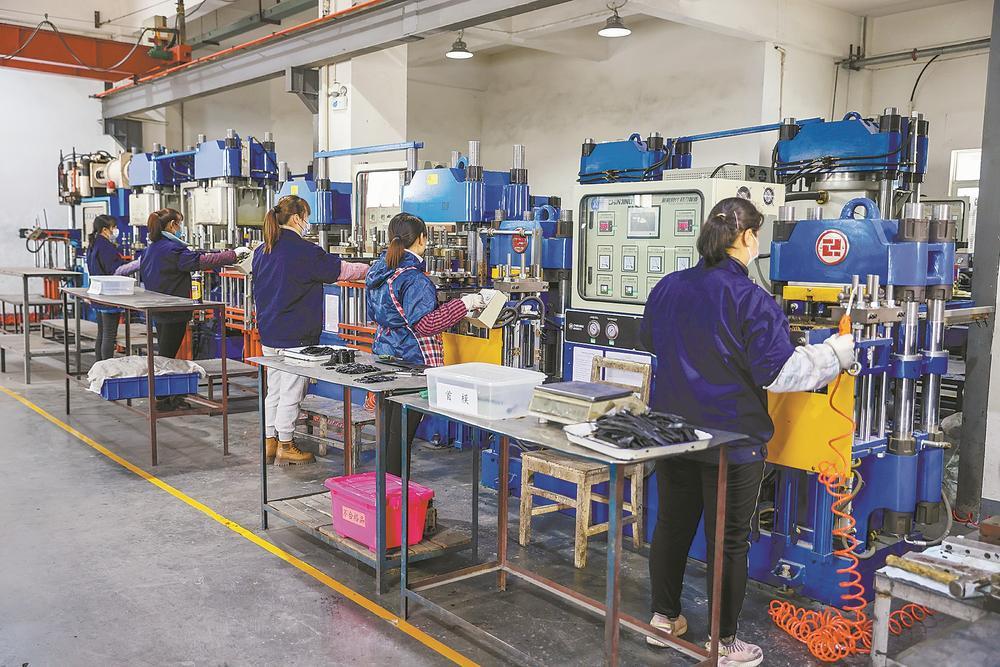 近日,湖北旭瑞橡塑零部件有限公司员工加班加点生产橡塑制品。