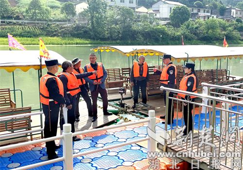 荆楚网(湖北日报网)讯(通讯员 欧阳智慧、马锦秀)“五一”将至,安全先行。4月25日至27日,保康县公安局过渡湾派出所组织专班民警,对辖区涉水码头、游船等重点部位的安全设施配备、从业人员的安全意识和资质等方面情况进行了全面检查,对重点水域和游客密集地开展“拉网式”治安隐患排查和安全大检查,全力保障游客安全出行和人民群众生命财产安全。