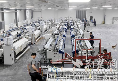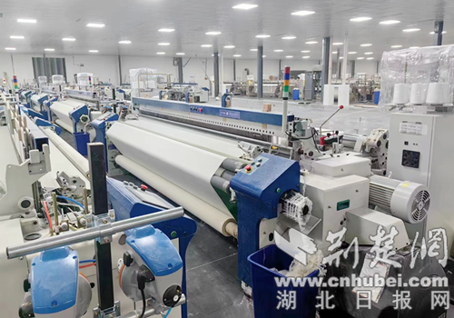 荆楚网(湖北日报网)讯(通讯员 王晓丽)7月2日,笔者在襄阳泰明实业有限公司车间看到,纺织车间机械隆鸣,织机飞速运转,全棉、涤棉、竹纤维、天丝莫代尔等各种天然纤维和化纤混纺纤维产品在织布机的哒哒声中,迅速变成了服装、特宽幅床上用品坯布面料。今年5月下旬,该公司投资500余万元新添置的40台先进高速、特宽幅喷气织机,使企业产能和产品质量进一步提升。