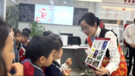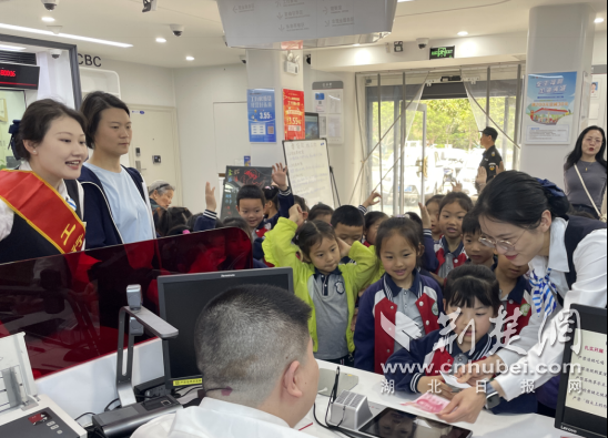 活动当天,工商银行襄阳鹿门支行工作人员带领小朋友参观银行工作环境,逐一介绍智能柜员机、柜台等日常办理业务的设备,孩子们对眼前“会吐钱”的机器、整齐排列的凭证夹充满好奇,不时发出惊叹声,眼神中满是对银行工作场景的新奇感。