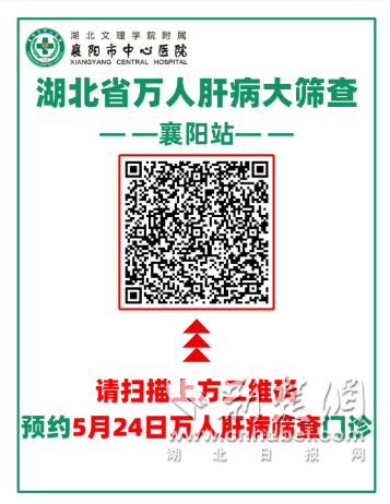 荆楚网(湖北日报网)讯(通讯员 姚敏、肖清心)5月24日,湖北省万人肝病大筛查(襄阳站)将在襄阳市中心医院东津院区举行。届时,顶尖肝胆疾病专家团队将现场为市民进行肝胆疾病筛查及健康咨询本次活动不仅免挂号费而且当天检查也免费。
