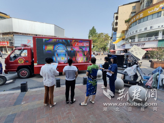 宣传车穿梭于大街小巷中,响亮的喇叭配上车载显示屏,不间断播放消防安全公益广告、电动自行车火灾案例、火场逃生教学影像、初期火灾扑救方法、消防宣传标语等内容,让消防知识融入大众日常生活。