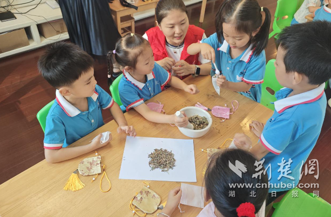 襄城区恒大幼儿园 制作防蚊虫中药香囊。 通讯员 供图