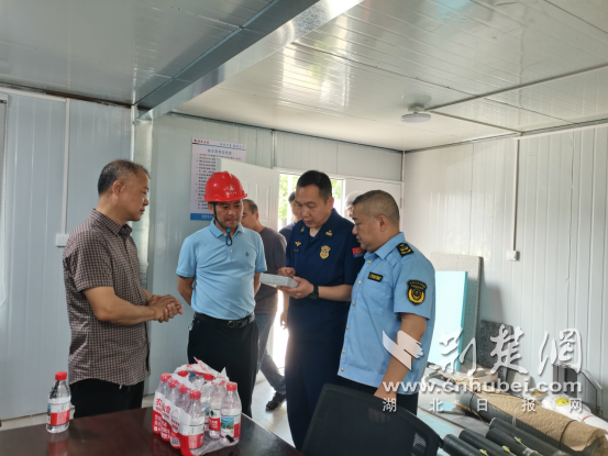 消防监督员检查施工单位消防安全。 通讯员 供图