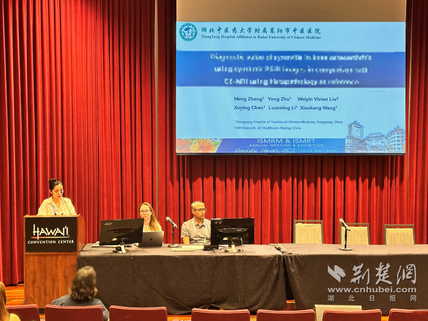 荆楚网(湖北日报网)讯(通讯员 杜艺)笔者从襄阳市中医医院获悉,第33届国际医学磁共振学会(ISMRM)年会在美国夏威夷檀香山举行,襄阳市中医医院放射影像科科研团队张萌医生受邀参会并交流,提升了医院及科室在国际学术舞台的知名度。