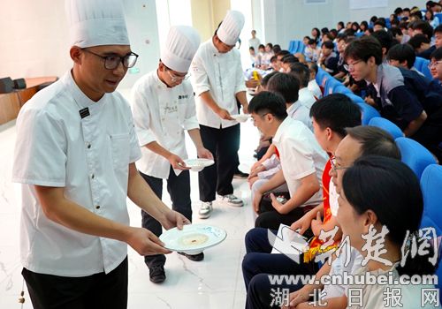 活动中,襄阳五一劳动奖章获得者、襄阳科技职业学院教师唐兵与他的学生带来了“豆腐雕刻牡丹花”绝活,精湛技艺赢得阵阵掌声。