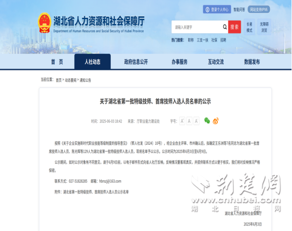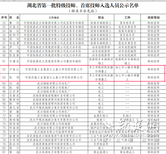 荆楚网(湖北日报网)讯(通讯员 廖春艳 刘姝娜)近日,湖北省首批特级技师名单正式公示,位于高新区(自贸片区)内的重点企业——中国兵器工业集团江山重工研究院的两位顶尖技能大师张伟、方振红凭借卓越的技术贡献和行业影响力荣耀登榜,为片区高技能人才建设树立起崭新标杆。