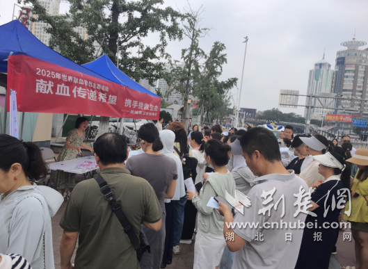 荆楚网(湖北日报网)讯(通讯员 王玉生、王玲)为普及科学献血知识、弘扬无私奉献精神,6月15日,樊城区卫健局联合辖区街道办事处、襄阳市中心血站、襄阳市第五人民医院,在人民广场献血屋,举办了一场主题鲜明的无偿献血科普公益活动。