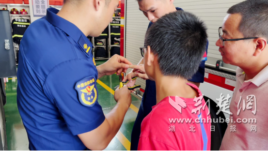 荆楚网(湖北日报网)讯(通讯员 王磊)6月16日,一名男孩在家长陪同下,来到谷城县消防救援大队园林路消防救援站寻求帮助,称自己的手指被戒指卡住,无法取下。
