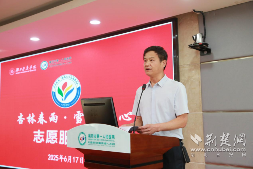 襄阳市第一人民医院党委书记、第四临床学院院长周卫兵致辞。 通讯员 供图