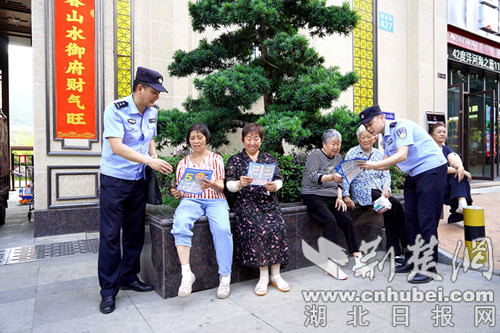 荆楚网(湖北日报网)讯(通讯员 欧阳智慧 柳昭阳)“阿姨,耽误您几分钟时间,带您了解一下最新骗术。”6月18日,在湖北省襄阳市保康县城关镇城南社区,民警正在开展扫街式反诈宣传。连日来,民警带着精心印制的反诈宣传单走进社区、学校和商铺,以案例讲解、现身说法、情景模拟等方式,对所辖居民、学生和商户进行常态化反诈宣传,进而提高他们对各类诈骗的鉴别能力和自我防范意识。