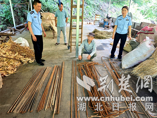 民警将所盗钢筋发还失主。通讯员供图