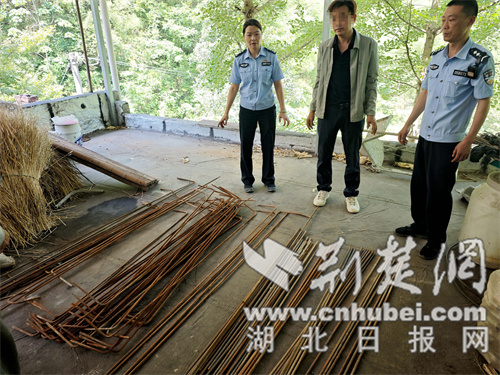 原来,6月22日一早,王师傅带领工人来到保康县后坪镇车峰坪村小地名桐麻沟施工地干活时,发现堆放在工地用来搭建管网水井的90余根长约1.5米、粗0.5公分、价值500余元的钢筋“不翼而飞”,王师傅抱着试一试的心态报了警。