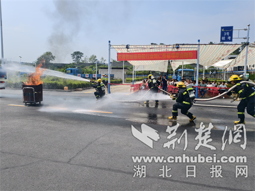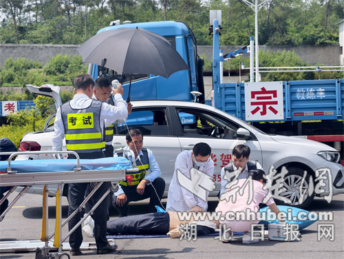 荆楚网(湖北日报网)讯(通讯员 林宏 梁政)6月24日上午,交警、消防、医疗、驾培等部门在南漳宗华驾校举办应对突发事件实战演练活动。