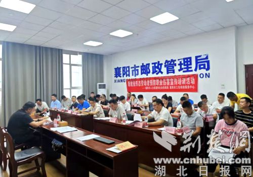 为了加快落实省人力资源和社会保障厅、省邮政管理局关于印发《湖北省推进快递行业企业全日制员工参加社会保险工作方案》的通知要求,襄阳市人社部门与邮政部门利用全市邮政快递业6月份安全例会契机,现场开展针对快递业从业人员的工伤预防知识培训。人社部门聚焦社会保险参保、工伤认定、劳动能力鉴定、工伤待遇标准、工伤治疗康复等热点焦点问题进行宣讲,现场与顺丰、申通、京东等36家快递企业有关负责人进行了政策宣讲人员和深入交流,频繁互动。