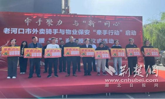开展外卖骑手与物业保安“牵手行动”启动暨暖“新”商户授牌仪式活动。 通讯员 供图