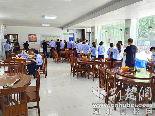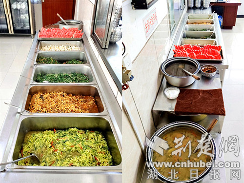 荆楚网(湖北日报网)讯(通讯员 欧阳智慧 陈高玺)清炒南瓜丝、黄豆焖蹄脚、小炒萝卜叶、豇豆炒鸡丝、拌凉粉、冬瓜肉片汤、绿豆汤……7月2日中午时分,在湖北省襄阳市保康县公安局机关食堂自助区前,女警小王精心挑选菜品。很快,她端起多功能餐盘和一个碗——两荤三素配解暑汤、西瓜,组成她午间的能量餐。“15元自选五种菜肴,还有汤和水果,满足口味还不浪费。”她指着个人出3元、单位补12元的精致菜品微笑着说。