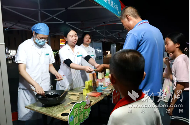 荆楚网(湖北日报网)讯(通讯员 康健、邵本刚)结束一天的忙碌,一边逛着集市,一边学习名医的养生妙招,还能免费体验把脉、拔罐、喝养生茶……7月11日下午6时至晚9时,在襄城区昭明台广场,襄阳市中医医院“中医夜市”正式“出摊”。