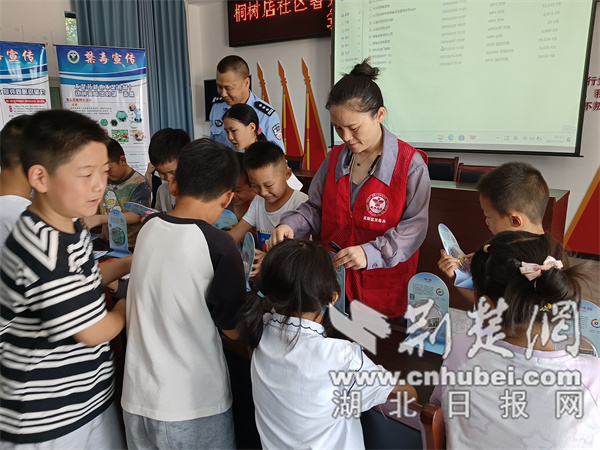 荆楚网(湖北日报网)讯(通讯员刘晨光、罗娟娟、韩华艳)为筑牢青少年禁毒防线,提升暑期安全防护意识,7月16日,襄阳高新区米庄派出所联合米庄镇社区戒毒康复中心,走进桐树店社区暑托班开展禁毒宣传活动,为孩子们送上一堂特殊的暑期禁毒宣传课。