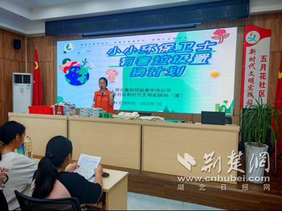 荆楚网(湖北日报网)讯(通讯员 李卫 石文君)7月22日,湖北襄高控股康宇洁公司联合襄阳高新区五月花社区在社区新时代文明实践站开展“小小环保卫士,有害垃圾置换计划”活动,吸引了众多居民参与,特别是暑期托管班的小朋友们积极响应,为环保行动贡献自己的力量。