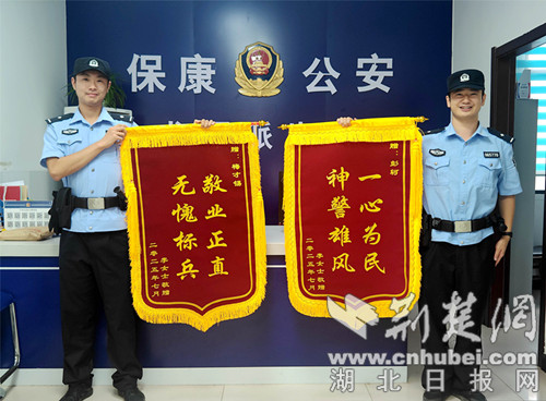 荆楚网(湖北日报网)讯(通讯员 欧阳智慧 彭轲)7月29日,湖北省襄阳市保康县公安局龙坪派出所意外收到一个快递,里面竟是两面锦旗,鲜红的绸面上“一心为民 神警雄风”“敬业正直 无愧标兵”16个金字熠熠生辉。这两面锦旗的背后,承载的不仅是个人谢意,更是群众对公安工作最质朴的认可。