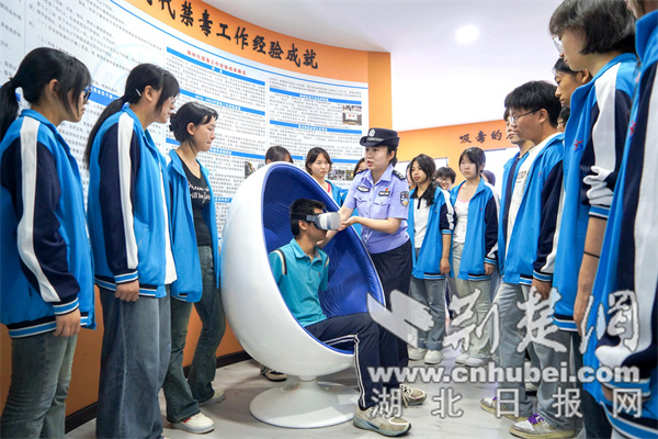 戴上VR眼镜感受吸毒的危害。通讯员供图