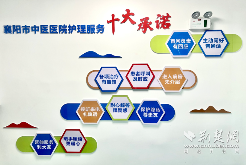 襄阳市中医医院护理部副主任刘瑜表示,这些人文关怀细节,已经融入了医院的日常工作中。并且,护理部提炼推出“十大服务承诺”,将看似微小却影响深远的服务细节固化为行动准则。从进入病房先自我介绍、主动问好,到患者呼叫及时回应、治疗前充分告知,再到推广普通话沟通以避免方言带来的误解,每一项承诺都直指患者就医体验的“痛点”。