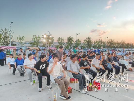 活动中,郑岗社区志愿者与主办方、厂区负责人紧密协作,提前摆放好板凳,维持秩序、引导人流,让活动现场始终井然有序,既保障了演出顺利,也让职工感受到 “家门口” 的贴心服务。当《日不落》《奢香夫人》的熟悉旋律响起,台下不少职工瞬间被勾起共鸣,纷纷举起手机记录,跟着节奏轻轻哼唱,甚至跟着歌词大声合唱,篮球场上的欢呼与歌声交织,将夜晚的热度推向高潮。让工装换荧光的夜晚,成为职工们扎根 “第二故乡” 的暖心记忆。