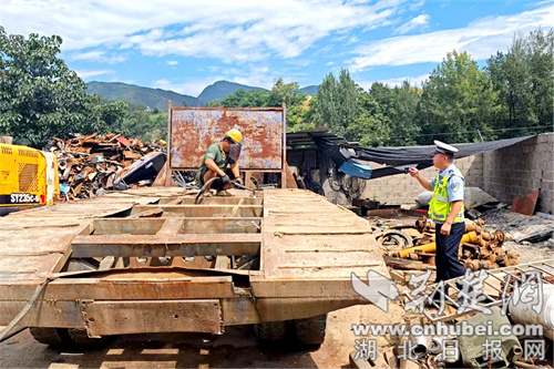 交警监督拆解“三无”报废货车。通讯员 供图