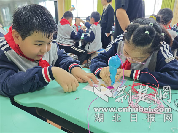 同学们体验用3D打印笔作画。记者翟芹 摄