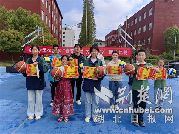 经过评委组的认真评选,比赛最终评选出一等奖4名、二等奖6名。获奖学生在国旗下合影留念,手持奖状和篮球、排球等运动类奖品,脸上洋溢着自豪的笑容。