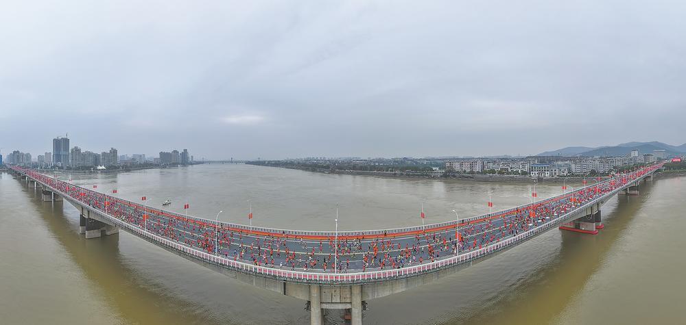 穿过凤雏大桥,参赛选手步履铿锵,向着终点坚定前行。