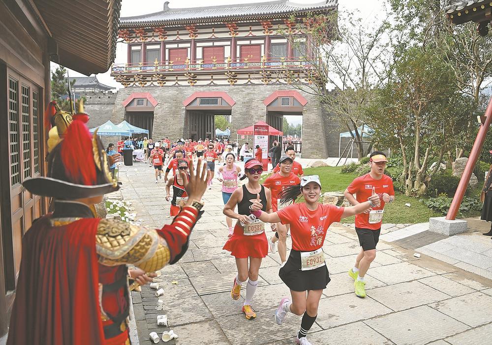 赛道穿唐城,一步越千年。古色古香的朱雀廊、气势恢宏的凯旋楼旁,古装小姐姐翩跹起舞,盛唐繁华气息扑面而来。完成半程马拉松的选手纷纷放慢脚步,沉浸式感受盛唐气韵。襄阳的诚意,藏在细节里:古隆中、唐城、奇幻谷、黄家湾、米公祠等39家景区,面向参赛选手推出特价优惠或免票福利;100多家餐饮、住宿企业开启“宠客”模式,让“侠义襄阳”的温情浸润每一位跑友的心。