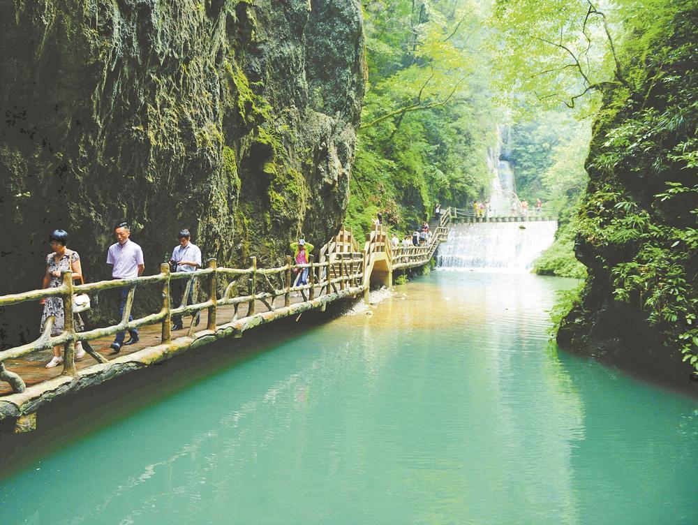 游客在尧治河尧帝神峡游览。