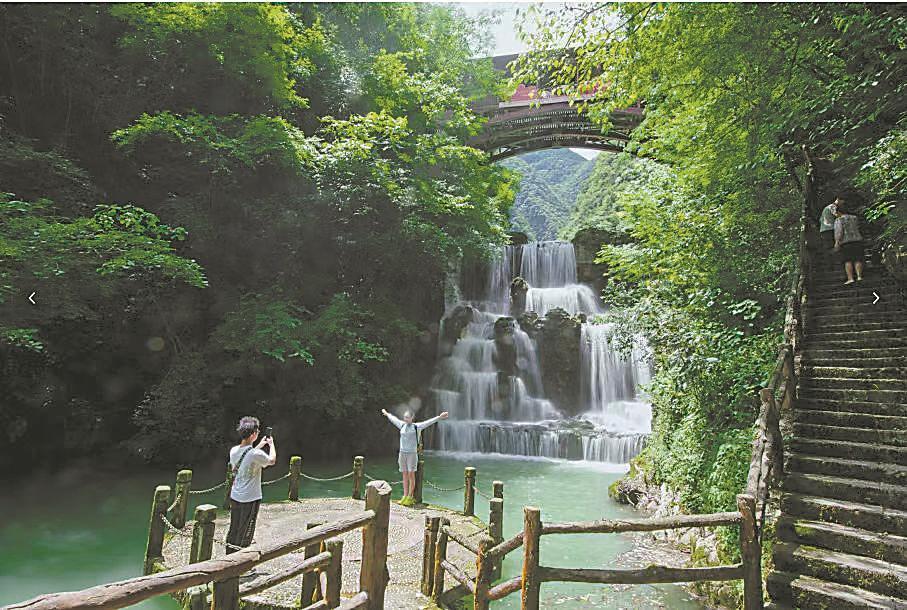 在五道峡景区,“卞和献玉”浮雕与“抱玉岩”景点相映成趣,国家级非遗“沮水巫音”传承人王述银带领团队每日演出,让距今千年的楚地巫音回荡在峡谷间,厚重的历史变得可触可感。“依托峡谷的自然奇观,我们把荆楚文化故事‘藏’在步道、剧场、民宿里,游客走一路、看一路、听一路,就能读懂保康的文化底蕴。”湖北荆山楚源生态文化旅游开发有限公司总经理李琼说,现在景区文化类体验项目参与率超过80%,游客平均停留时间延长了2小时。