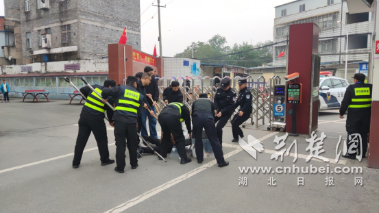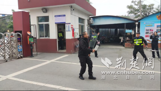 与此同时,由襄阳市第二十七中学教师和后勤保安组成的安保应急小队闻讯后,迅速携带防暴盾牌、防暴钢叉、警棍等器械赶往现场。队员们分工明确,协同作战,利用战术队形与“歹徒”展开周旋、对峙,最终抓住时机,果断出击,成功将“歹徒”制服并带离现场,有效控制了事态的进一步恶化。