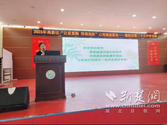荆楚网(湖北日报网)讯(通讯员杜心怡 李全权 李依曼)为深化家校协同育人机制,共同守护学生身心健康成长,10月23日,襄阳市第二十七中学精心策划并成功举办了以“家庭教育如何成为学生的能量补给站”为主题的专题讲座。活动特邀心理健康教育专家杨玉梅老师担任主讲,吸引了众多学生家长的积极参与,现场座无虚席,气氛温馨而热烈。