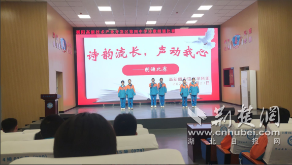 荆楚网(湖北日报网)讯( 通讯员刘卓越 何玉梅)秋夜微凉,诗意正暖。2025年10月23日晚,高新四中阶梯教室灯火通明,化作一片声音与情感的海洋。由校团委与语文组联合主办的“声韵流长,声动我心”诗歌朗诵会在此隆重举行。这是一场完全由学生主导的青春盛宴,从台上的主持人到台下的评委,处处闪耀着学子们的智慧与才华。