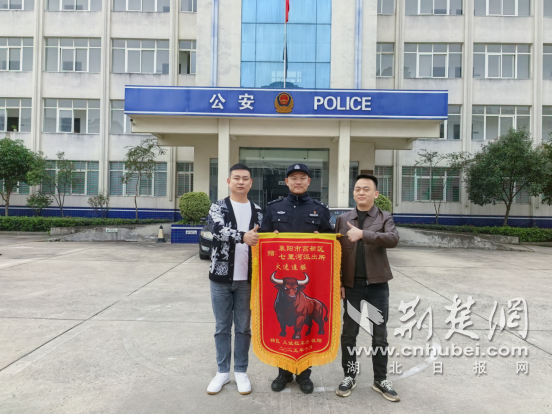 荆楚网(湖北日报网)讯(通讯员 刘晨光 张璇)“真没想到钱能这么快追回来,太感谢王警官了!这‘一头牛’的锦旗您一定要收下,代表我们老百姓对你们办案‘牛劲’的认可!”10月27上午,在襄阳高新区七里河派出所租车店老板王先生紧紧握着00后民警王子涵的手,激动地说道。10月18日晚,王先生店前的一车辆被拉车门盗窃,丢失3万元现金,后七里河派出所民警迅速出击,星夜驱车赶往武汉,成功抓获3名犯罪嫌疑人并追缴被盗资金2万余元,及时为群众挽回损失。