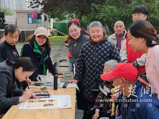 笔墨传情,纸短情长。书法区内,老河口市老年大学的老师挥毫泼墨,“福寿安康”等祝福在笔尖流淌,引得老人们连连称赞。现场还上演了精彩文艺节目——空竹翻飞演绎《中国美》,二胡悠扬奏响经典旋律,老人们随着节拍挥动手中花束,笑容如秋阳般灿烂。