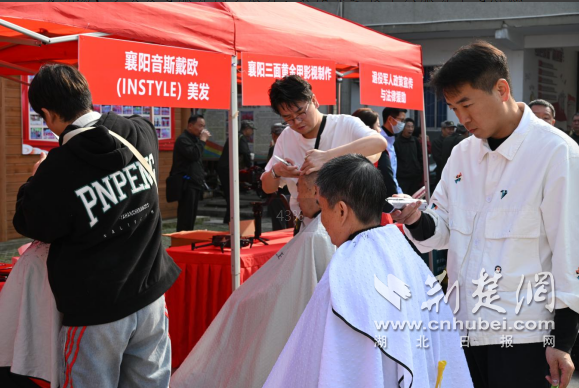志愿者们不仅发放了健康知识手册,更用通俗易懂的语言讲解保健要点,将关怀融入细节,让健康意识深入老兵们心中。活动现场,多项暖心服务同步展开:襄阳市退役军人服务中心志愿者耐心解读政策;金兰珠宝志愿者为老人免费清洗、编织红绳;襄阳音斯戴欧美发师,用巧手理出新发型;宫延楼热灸养生馆的主理师雷志强,以专业推拿舒缓肩颈疼痛;樊城区“张富清老兵志愿服务队”将院落打扫得整洁如新;王氏锁业则提供免费换锁与特价智能锁服务。这些实在之举,如秋日暖阳,映照出对老兵群体的敬意与关怀,现场温馨满溢。