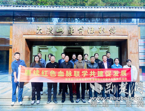 荆楚网(湖北日报网)讯(通讯员 晏光辉 黄赛) 10月28日,南漳县行政审批局机关党支部和中国移动通信集团湖北有限公司南漳分公司党支部,赴随州市大洪山革命陈列馆联合开展“庚续红色血脉、联学共建促发展”支部主题党日活动。以开展现场教学的形式,缅怀革命先辈,从党的百年伟大奋斗历程中汲取前进的智慧和力量,激发党员干部干事创业的热情。