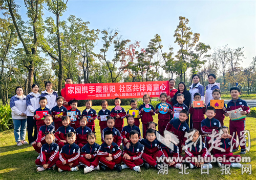 荆楚网(湖北日报网)讯(通讯员 付茸 张瑾 王绍辉)金秋送爽迎重阳,10月29日,樊城区第二幼儿园衡庄分园联合衡庄社区开展“家园携手暖重阳 社区共伴育童心”主题活动,组织大班40余名幼儿走进水淹七军公园,与社区60岁以上长辈开展“童心暖夕阳”敬老活动,用童真传递温情。