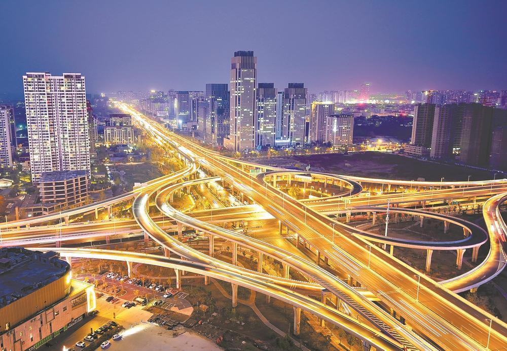 夜色中的云兴立交桥。 全媒体记者 乔森垚 摄