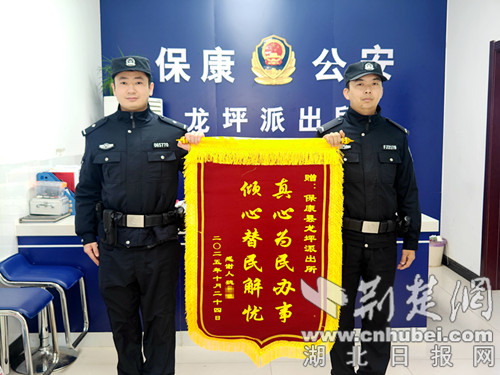 荆楚网(湖北日报网)讯(通讯员 欧阳智慧 彭轲)11月5日下午,湖北省襄阳市保康县公安局龙坪派出所收到一份从青海省寄来的特殊快递——一面绣有“真心为民办事,倾心替民解忧”字样的锦旗。寄件人是青海市民魏先生,为感谢民警帮他追回两年前遭遇电信诈骗损失的7400余元,他特意定制锦旗,跨越千里表达谢意。