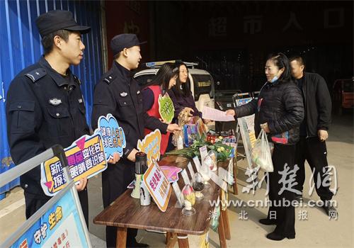 荆楚网(湖北日报网)讯(通讯员 杜心怡、李全权、罗肖)初冬晨光暖,集市烟火浓。11月5日,宜城市公安局南营派出所民警与禁毒志愿者,将“禁毒宣传摊”搬到了南营街道办事处官庄村超市门口,趁着赶集人流,把禁毒知识送到群众身边,营造全民参与禁毒的浓厚氛围。