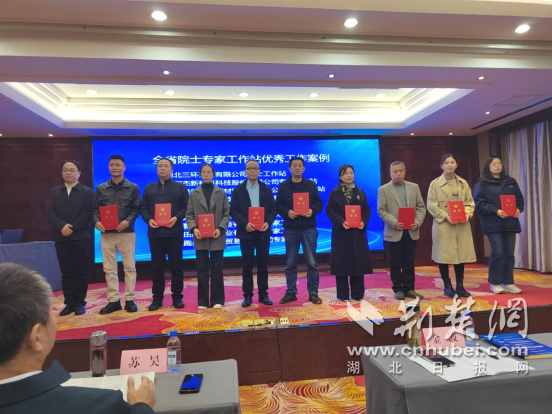 市科协党组成员、副主席刘黎明宣读2025年新建院士专家工作站批复文件,党组书记苏昊现场为8家新建专家工作站授牌,主席金波为入选2025年湖北省科协优秀案例的9家工作站颁发荣誉证书。