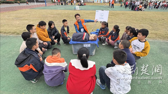 荆楚网(湖北日报网)讯(通讯员 母智华)11月12日下午,襄阳市高新区第二小学操场变身“安全实训阵地”,一场以“教会儿童急救 提高生存能力”为主题的实践课开讲。志愿者携教具入校,将抽象安全知识转化为实操技能。