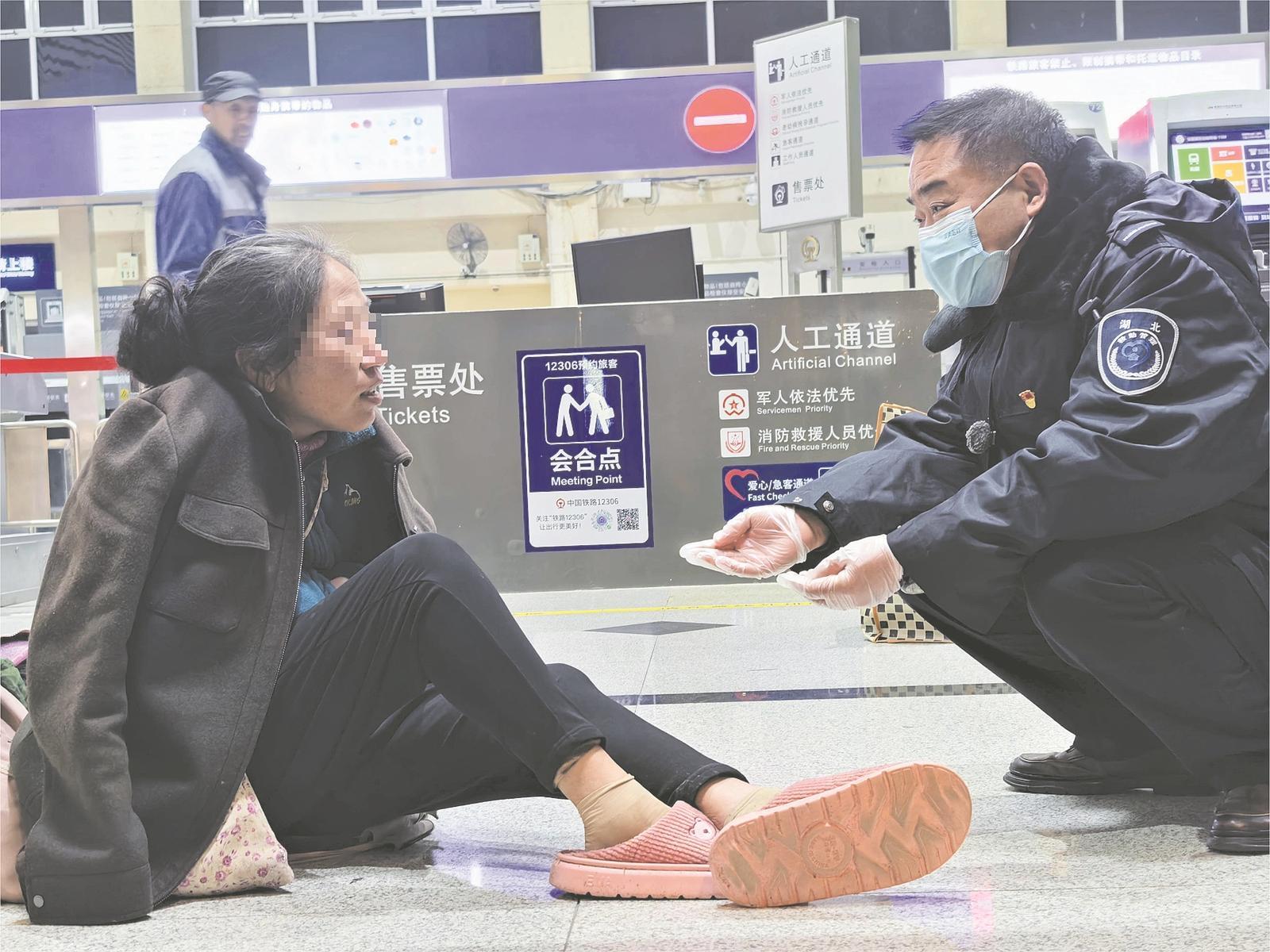 管志伟为张大姐介绍救助政策,劝说其入站接受救助